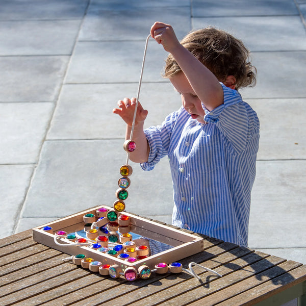 This versatile set is perfect for developing coordination and fine motor skills, practising counting and sorting, and sparking imaginative play. It’s also a wonderful tool for encouraging descriptive language and storytelling as children explore the sparkling jewels.